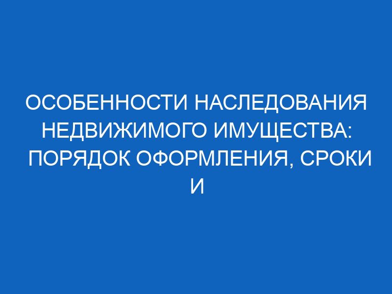 - Порядок наследования недвижимого имущества