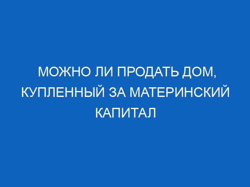 Можно ли продать дом, купленный за семейный капитал